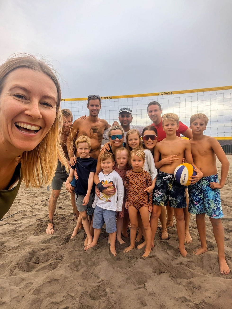 Strandlivet blir ofta en naturlig samlingspunkt. Vuxna spelar beachvolley flera dagar i veckan och det är lika vanligt med spontana matcher i sanden som planerade träningar. Samtidigt springer barnen mellan spelen, och ofta drar någon i gång en fotbollsmatch där både barn och föräldrar är med.